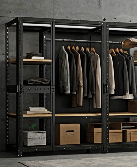 Materiales claros con molduras a modo de exposicion y almacenaje.